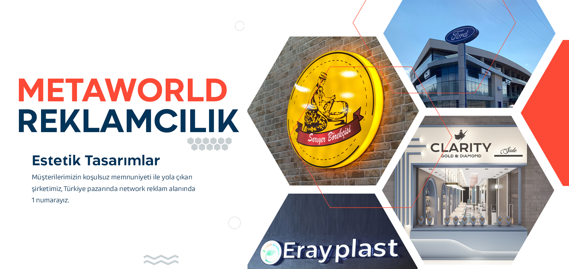Meta World Reklam olarak uzun yıllardan bu yana, kaliteli network reklamları üreterek mutlak müşteri memnuniyetini sağlamaya yönelik, sürekli daha iyiye ulaşma çabası ile her türlü sektörel yatırımı yaparak siz değerli müşterilerimize en iyiyi sunmayı hedef olarak görmekteyiz.